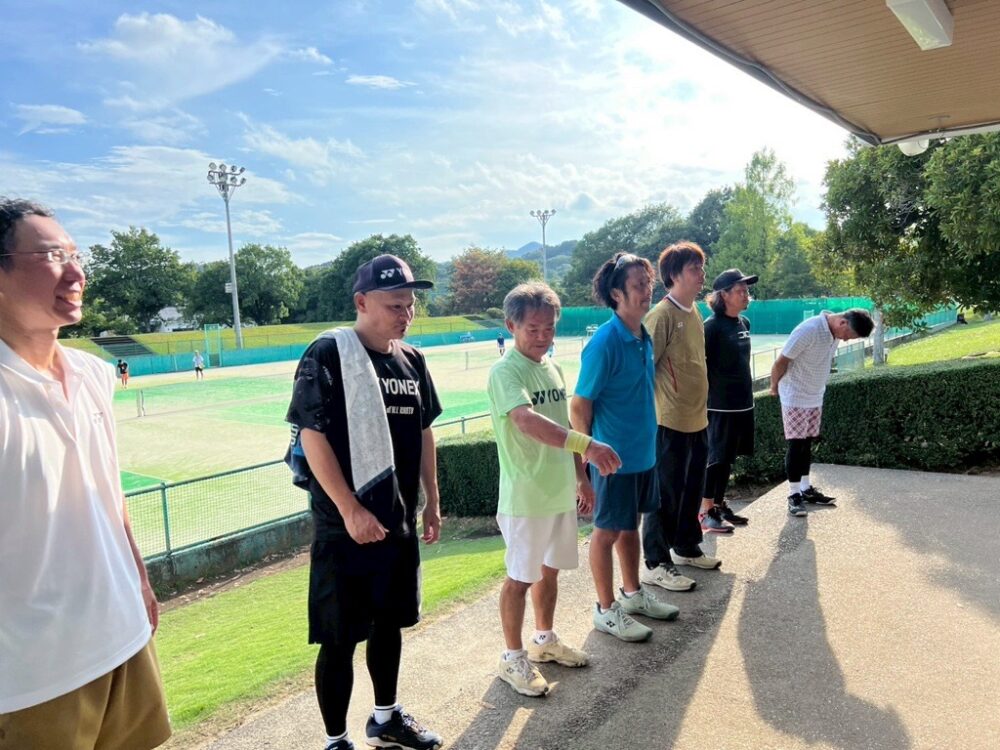 開会時は雨天でしたがほどなく雨が上がり、曇天から晴天へと変化し湿度が高く気温も30度を超える天候の中、総勢180名を超える選手が集まり、各カテゴリーに分かれてダブルスの個人戦が行われました。